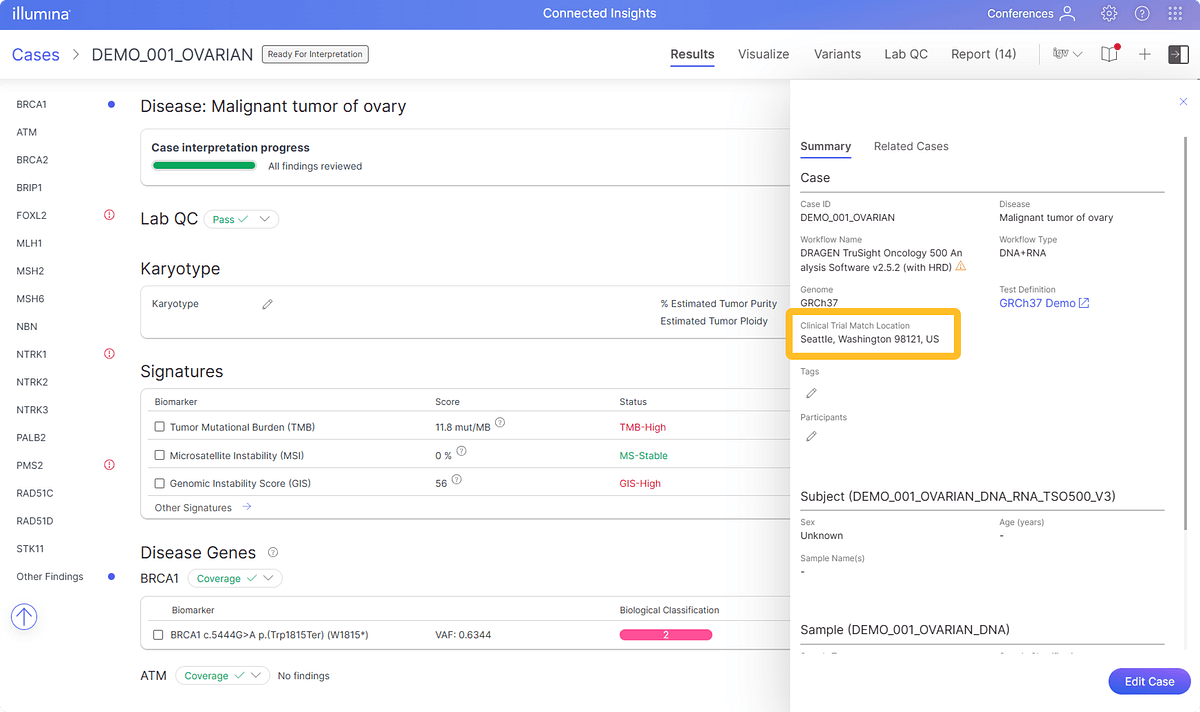 - Advanced Variant Interpretation: Deeper insights through co-occurring biomarker evidence, in-frame fusion identification, and geographic-based clinical trial information