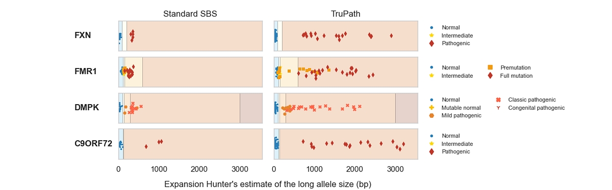 [4] Pathogenic STR expansion thresholds were derived from publicly available STR resources, including STRchive (https://strchive.org) and STRipy (https://stripy.org). All other data shown are Illumina internal data on file.